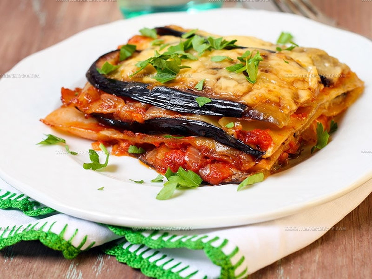 Moussaka showcases eggplant in Greek cuisine, featuring a similar creamy texture to lasagna. American kitchens often prepare eggplant parmigiana as a popular dish.