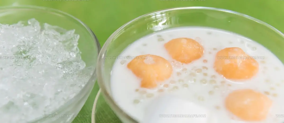 Cool summer variations include mixing fresh tropical fruits like mango, pomelo, and strawberries into the pearly dessert.
