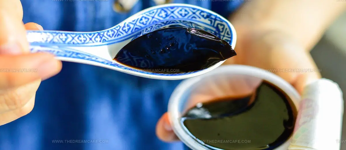 Modern versions replace turtle shell powder with herbal extracts and gelatin, creating a sweet, dark brown dessert with a smooth, slippery texture.
