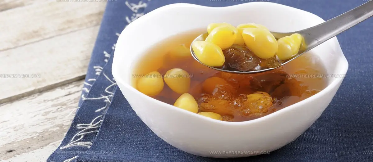 Traditional preparation includes lotus seeds and citrus peels that enhance its delicate flavor profile.