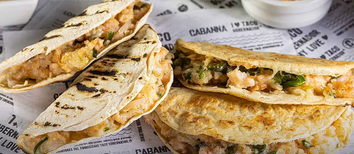 Tacos gobernador are signature Mexican seafood tacos originating from Sinaloa, featuring butter-grilled tortillas filled with succulent shrimp and melted cheese.