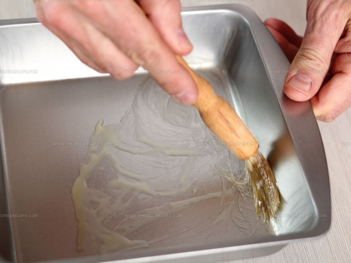 Butter or any neutral oil works perfectly for this technique, just make sure to cover the entire pan including sides and all those tricky corners.