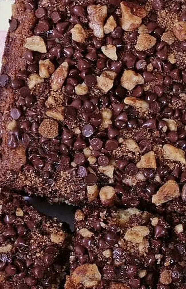 - Create the streusel topping by mixing chocolate chips, brown sugar, chopped walnuts, and ground cinnamon in a medium bowl until well combined.