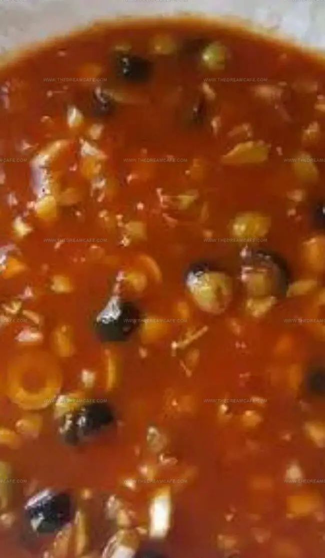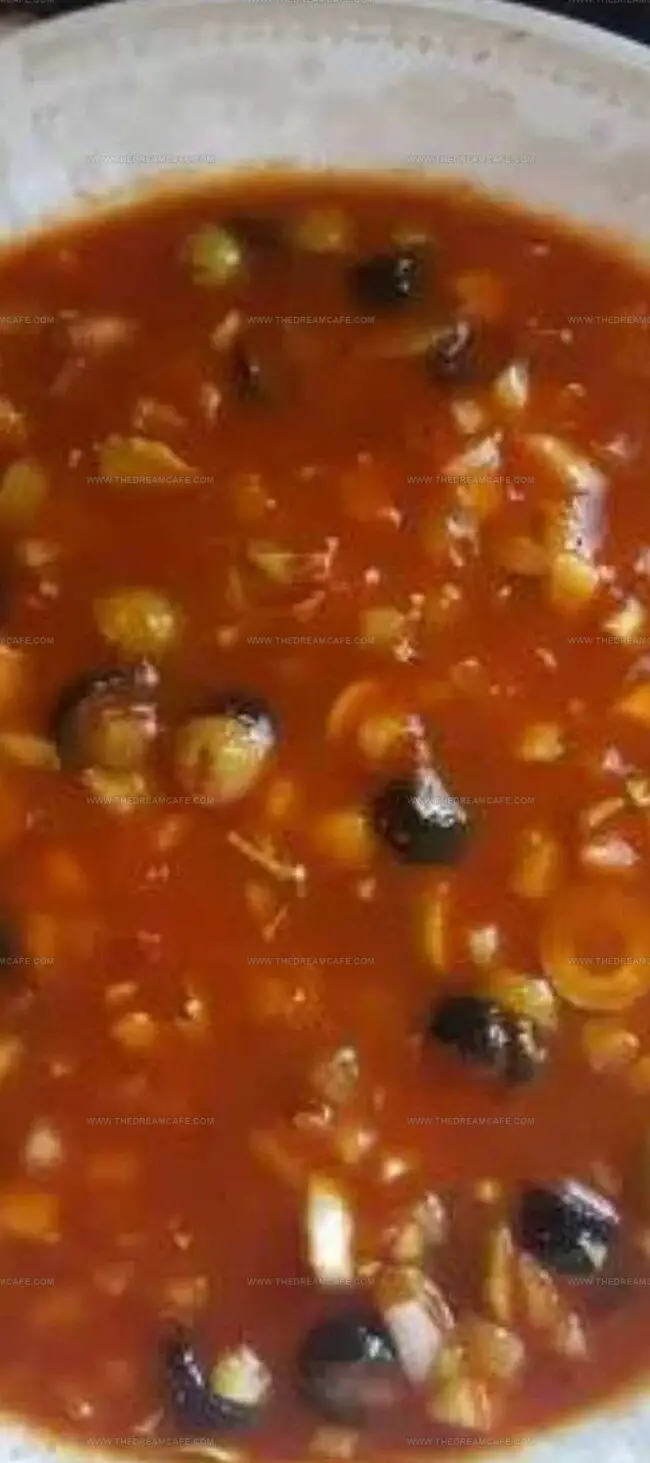 Cold, quivering, and translucent, this savory gelatin creation captures the essence of ripe tomatoes suspended in a vibrant, herb-infused suspension.