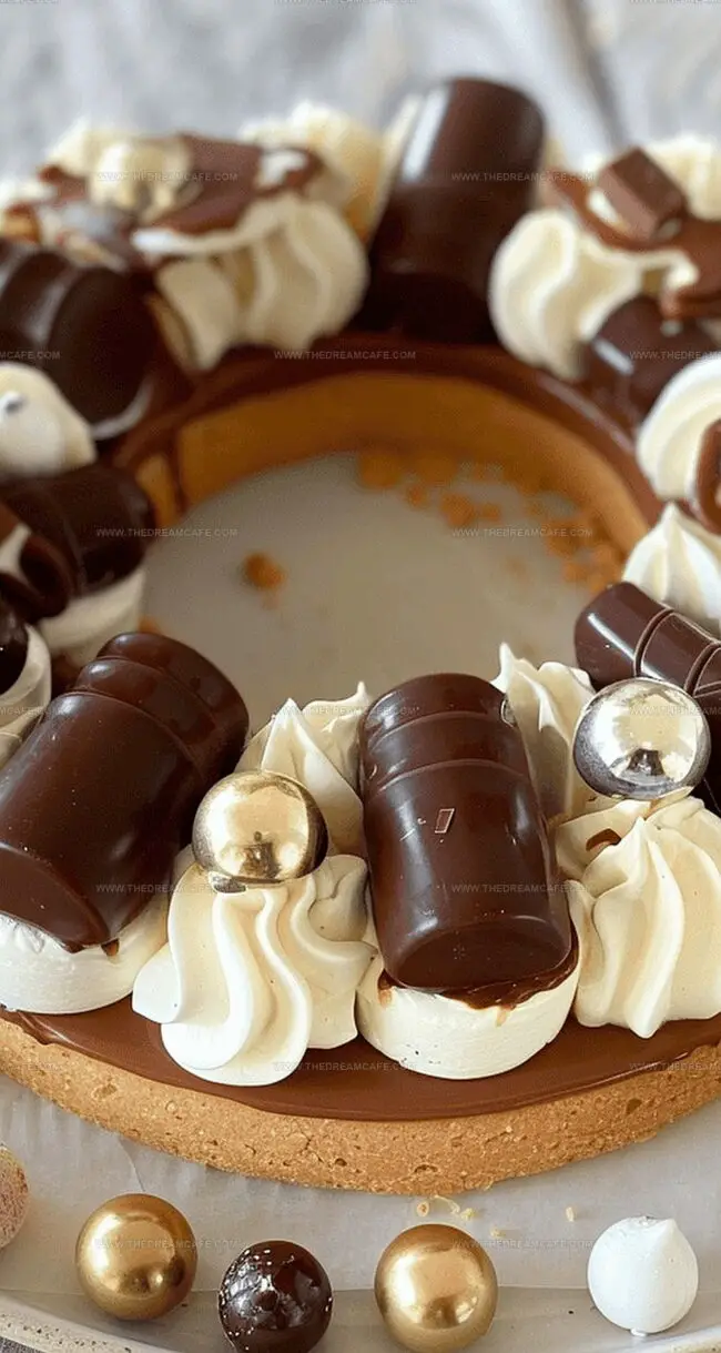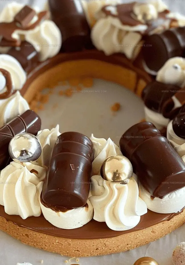- Embellish with Kinder chocolates and chocolate spheres. Refrigerate until serving time, ideally consuming within 24 hours for optimal flavor and texture.