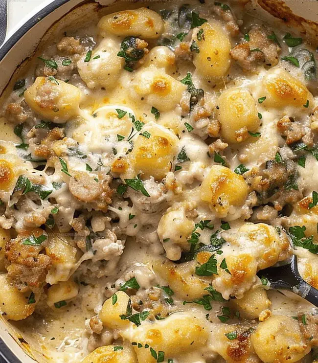 Comfort cascades through every bite of this hearty baked gnocchi with sausage that delivers pure warmth and satisfaction.