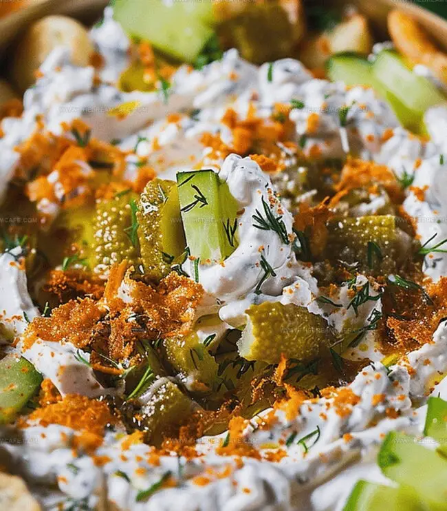 - Balance Tangy Elements: Adjust pickle juice and ranch seasoning gradually to control the dip’s overall tanginess and saltiness.