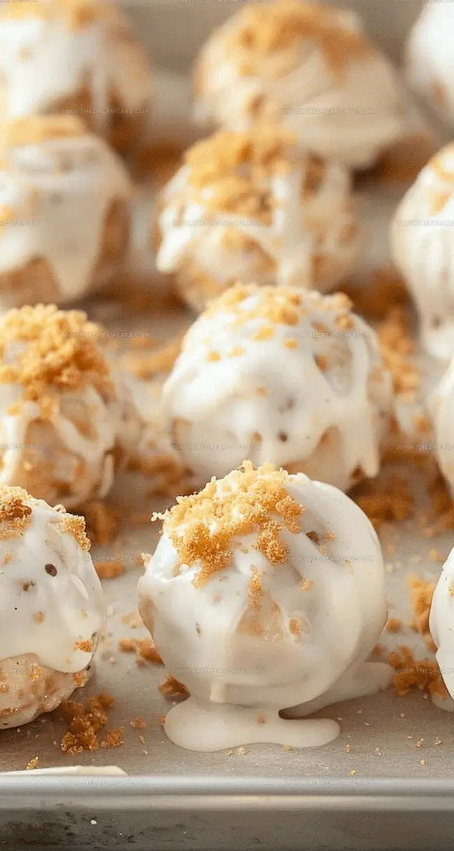 - Garnishing: While coating remains fluid, dust reserved pie crust fragments across the surface, implementing a rustic, textural embellishment. Allow balls to rest at ambient temperature until coating crystallizes entirely.
