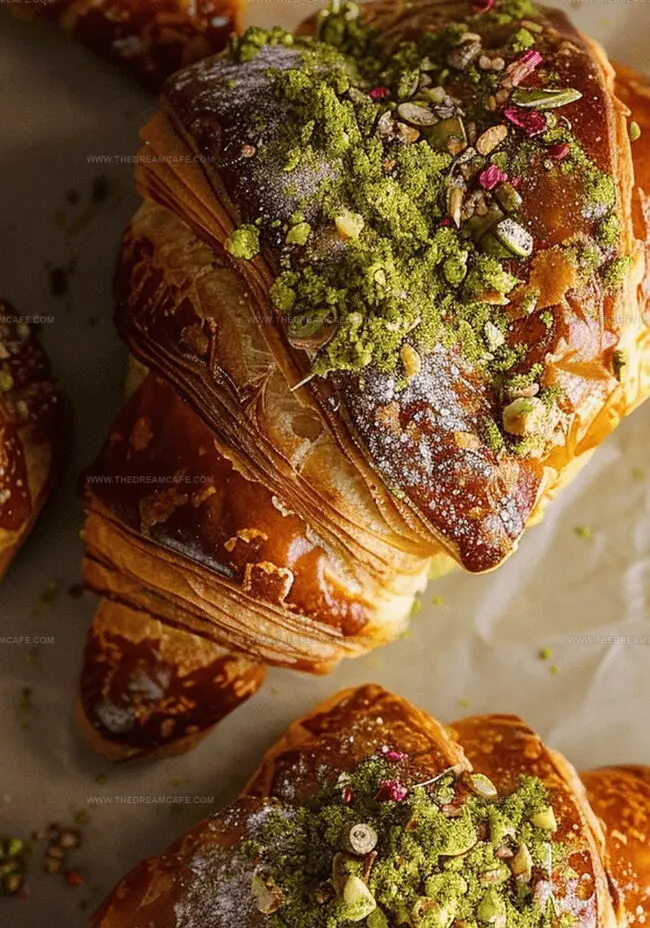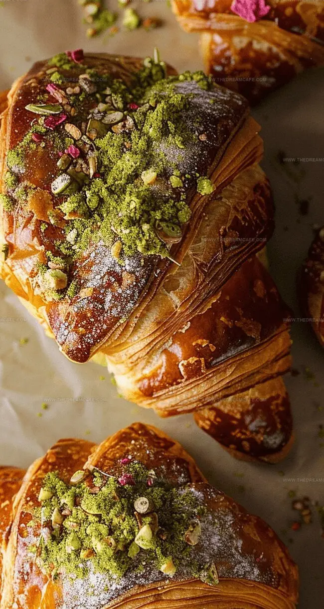 Nutty Crown Top each croissant with additional pistachio filling and scatter chopped pistachios across the surface, creating a stunning green-speckled landscape of deliciousness.