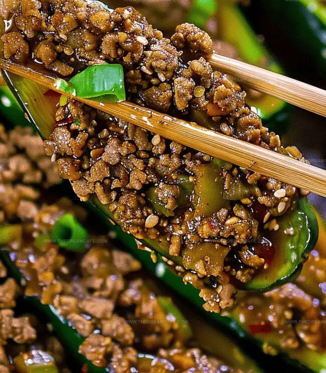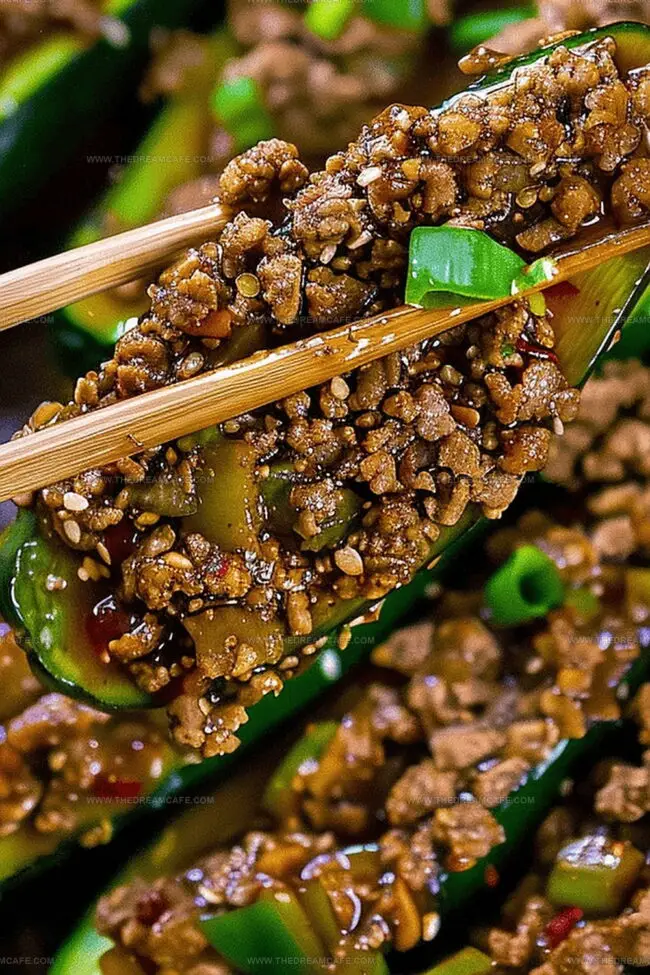 - Final Assembly: Fold in green onions and toasted sesame seeds, then generously fill roasted zucchini boats with the seasoned chicken mixture.