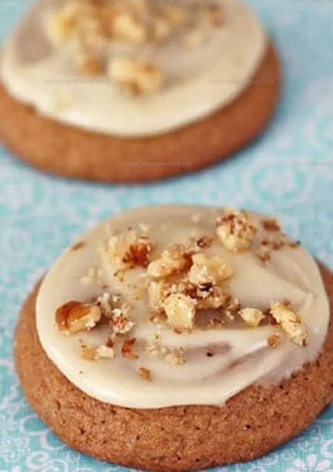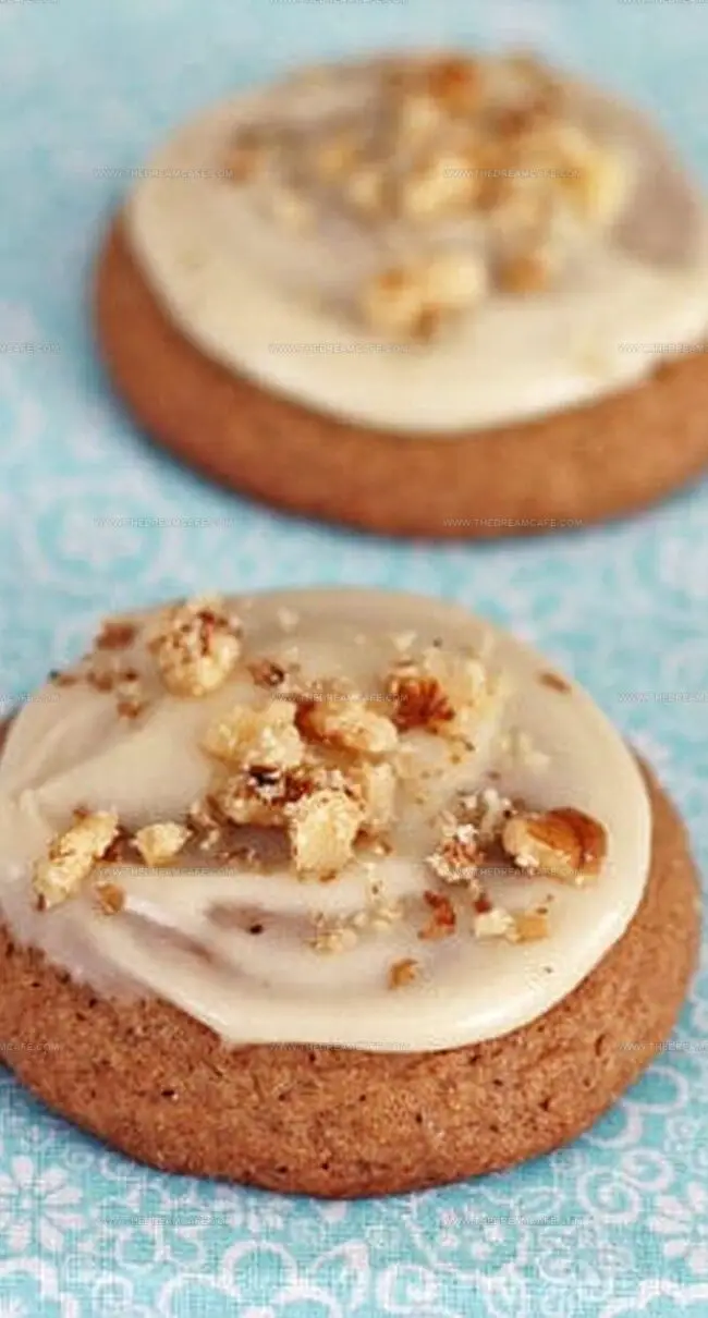 - Finish by sprinkling chopped walnuts evenly across the frosted cookies for added texture and flavor.