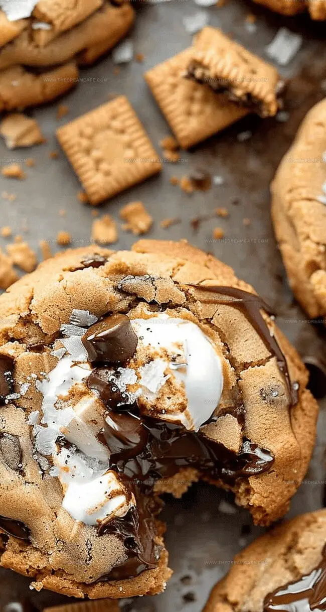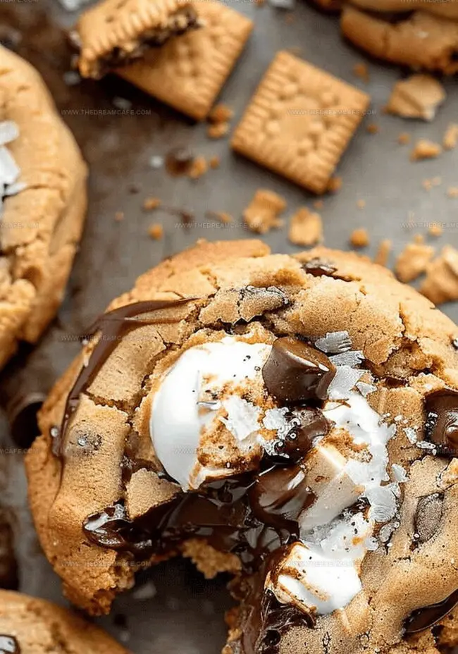 Gooey marshmallows and rich chocolate melt into these delectable s’mores cookies that capture the essence of campfire magic.