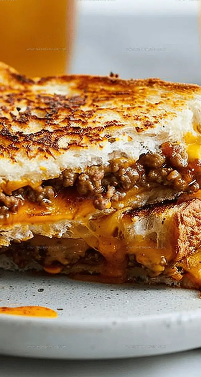 Spread softened butter generously on sourdough bread slices. Layer sharp cheddar cheese, then spoon the fragrant sloppy joe mixture across the bread. Sprinkle more cheese and crown with another buttered slice, creating a flavor-packed sandwich tower.