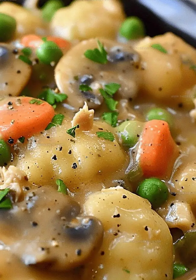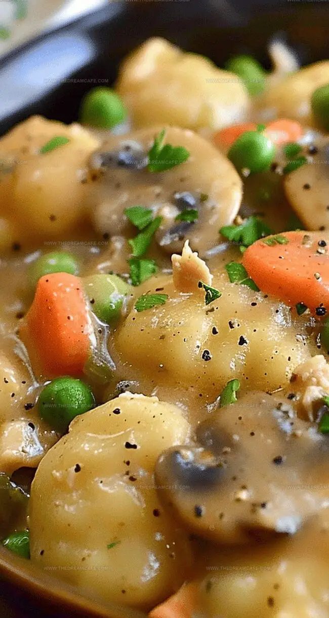 Soft, pillowy gnocchi nestled among tender chicken pieces create a delightful twist on the classic pot pie.