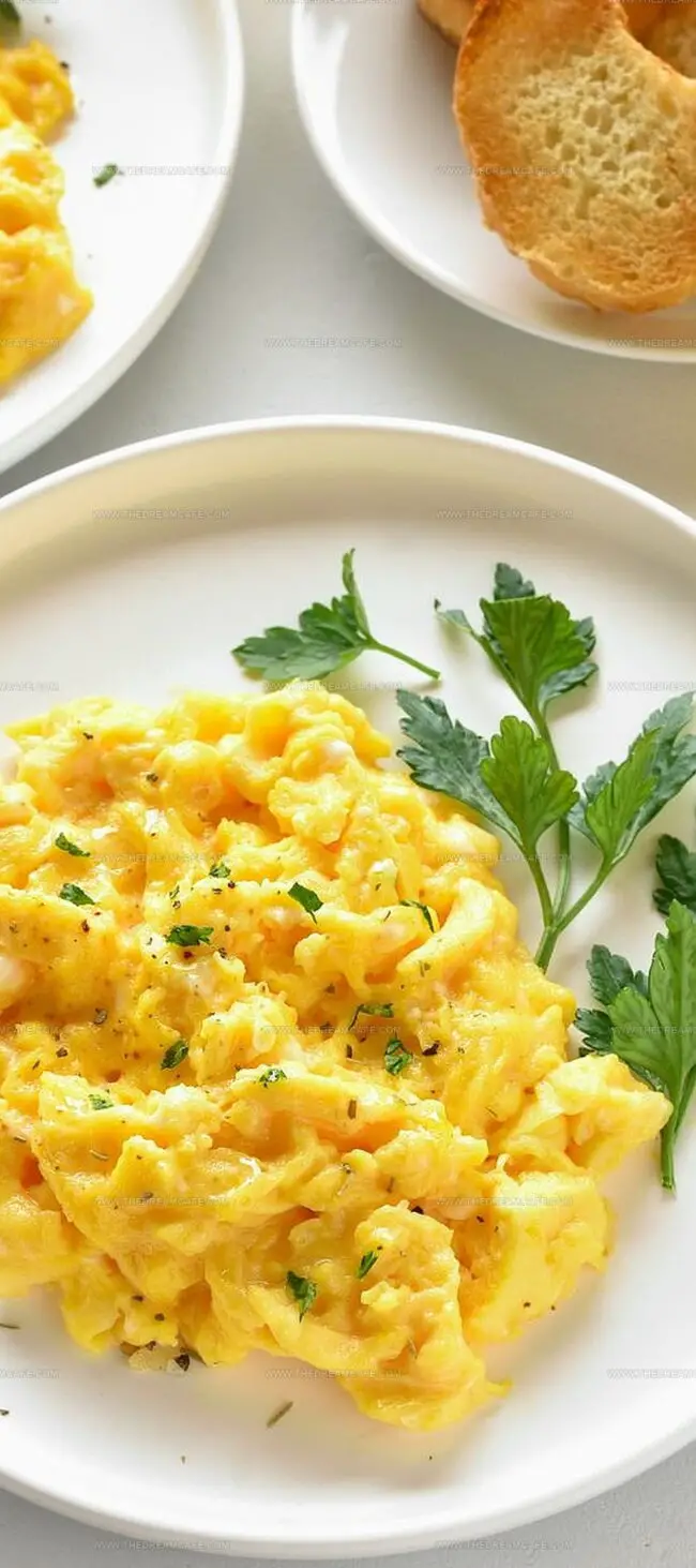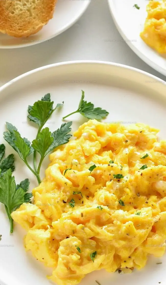 - Continue cooking and stirring constantly, scraping the pan bottom to create soft, delicate egg curds.