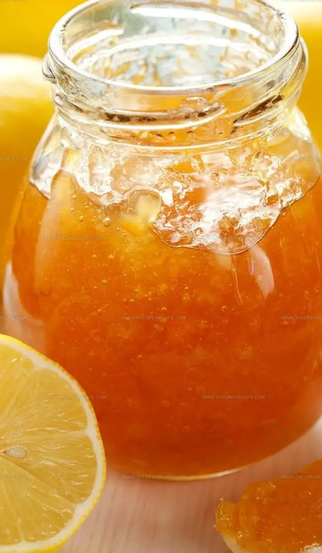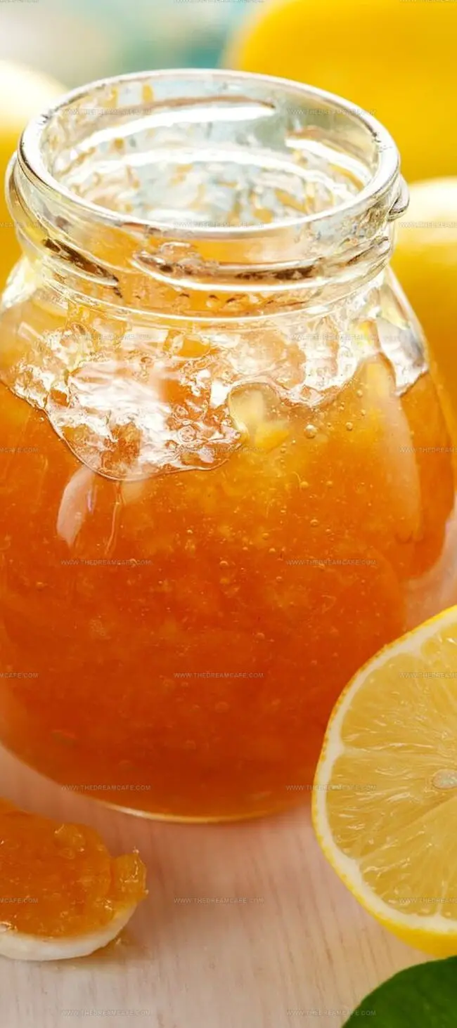 Zesty Meyer lemon marmalade whispers Mediterranean sunshine through delicate, translucent strips of citrus perfection.
