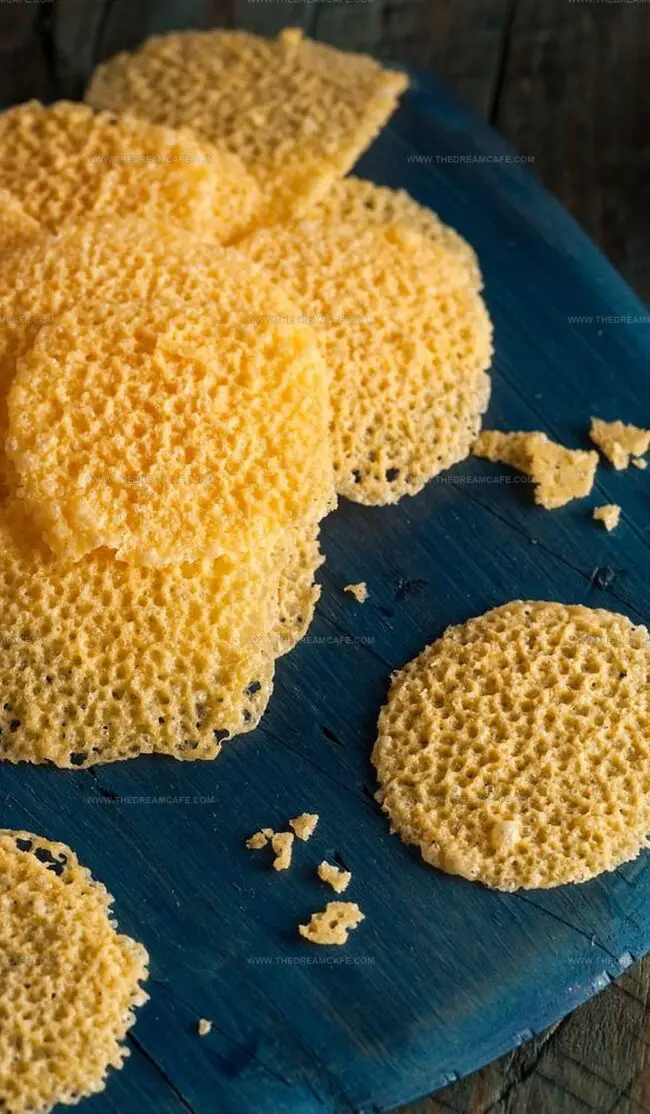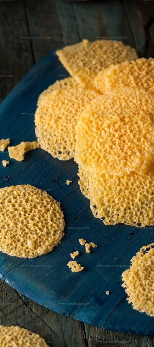 - Monitor the cheese crisps closely, allowing them to transform into golden, lacy wafers within 3 to 5 minutes – watching for the precise moment when edges turn delicately crisp and amber-colored.