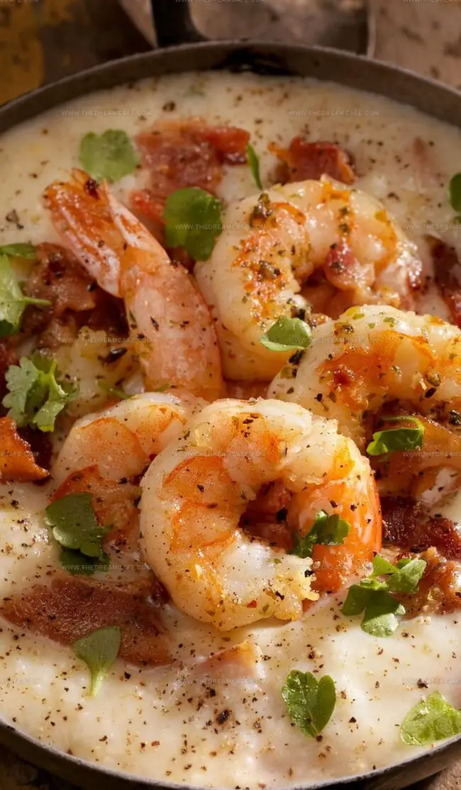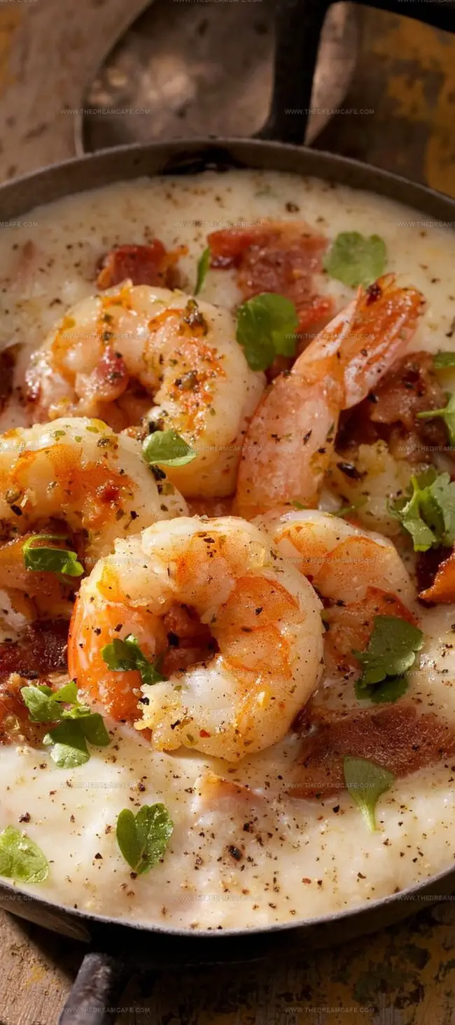 Salt-kissed shrimp nestled atop silky cheese grits invite passionate connections – so share this delectable experience, comment with southern spirit, and spread deliciousness across digital landscapes.
