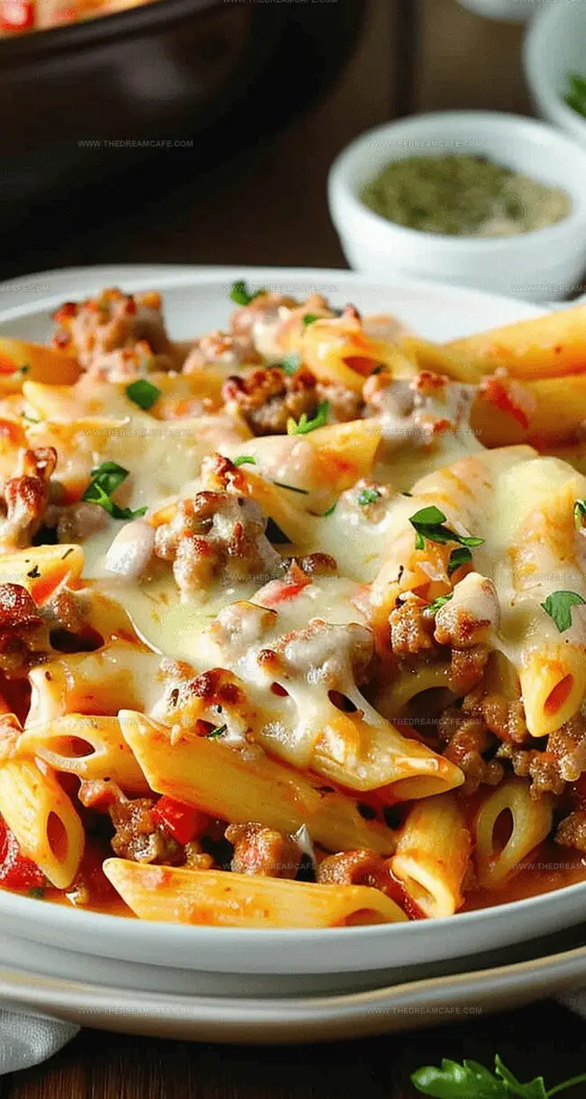 Hearty comfort food takes center stage with this creamy Italian sausage pasta bake that promises pure culinary delight.