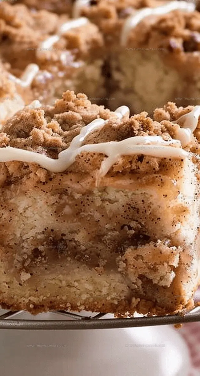 Soft, buttery layers mingle with cinnamon-rich crumbs that create an irresistible texture.