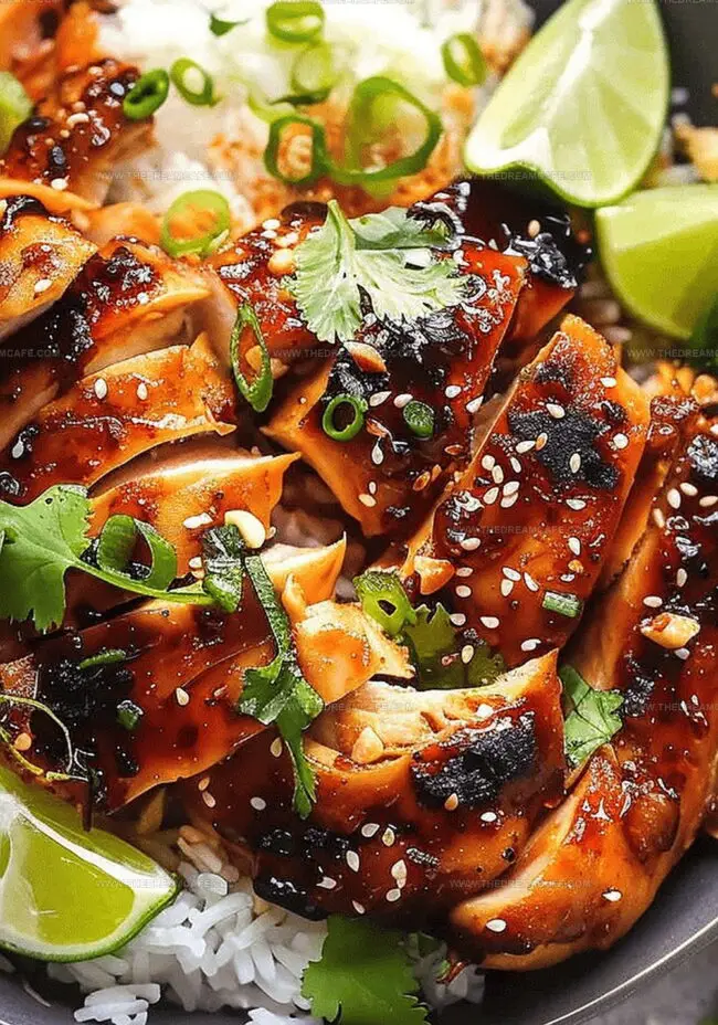 - Serving: Plate glazed chicken over steamed jasmine rice, top with chilled pickled vegetables, and garnish with chopped cilantro or green onions for a vibrant, flavor-packed presentation.
