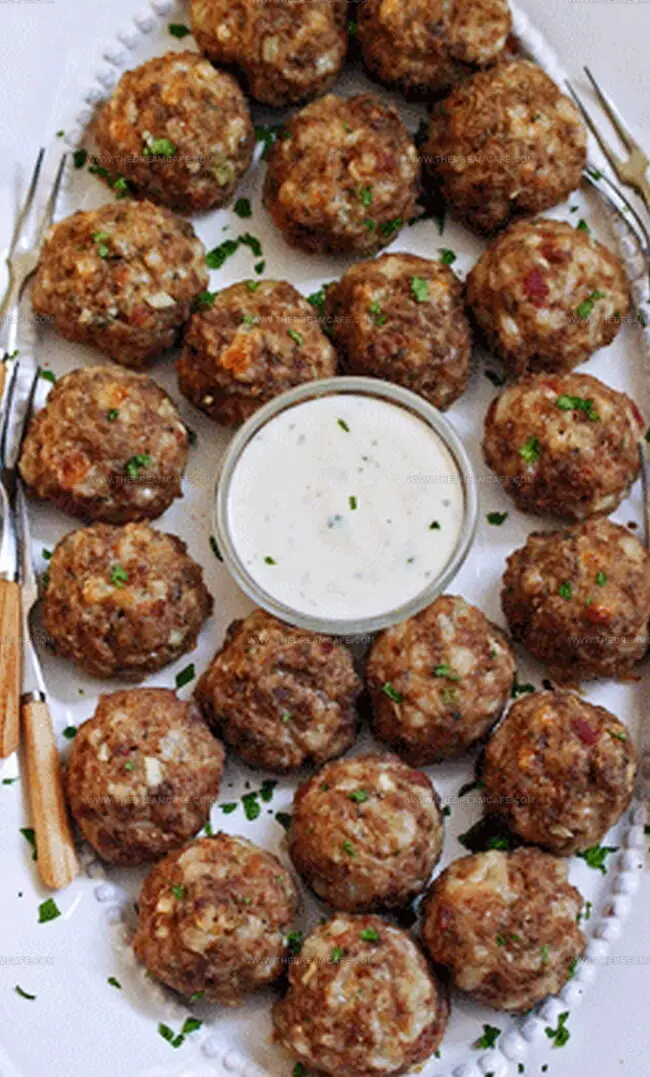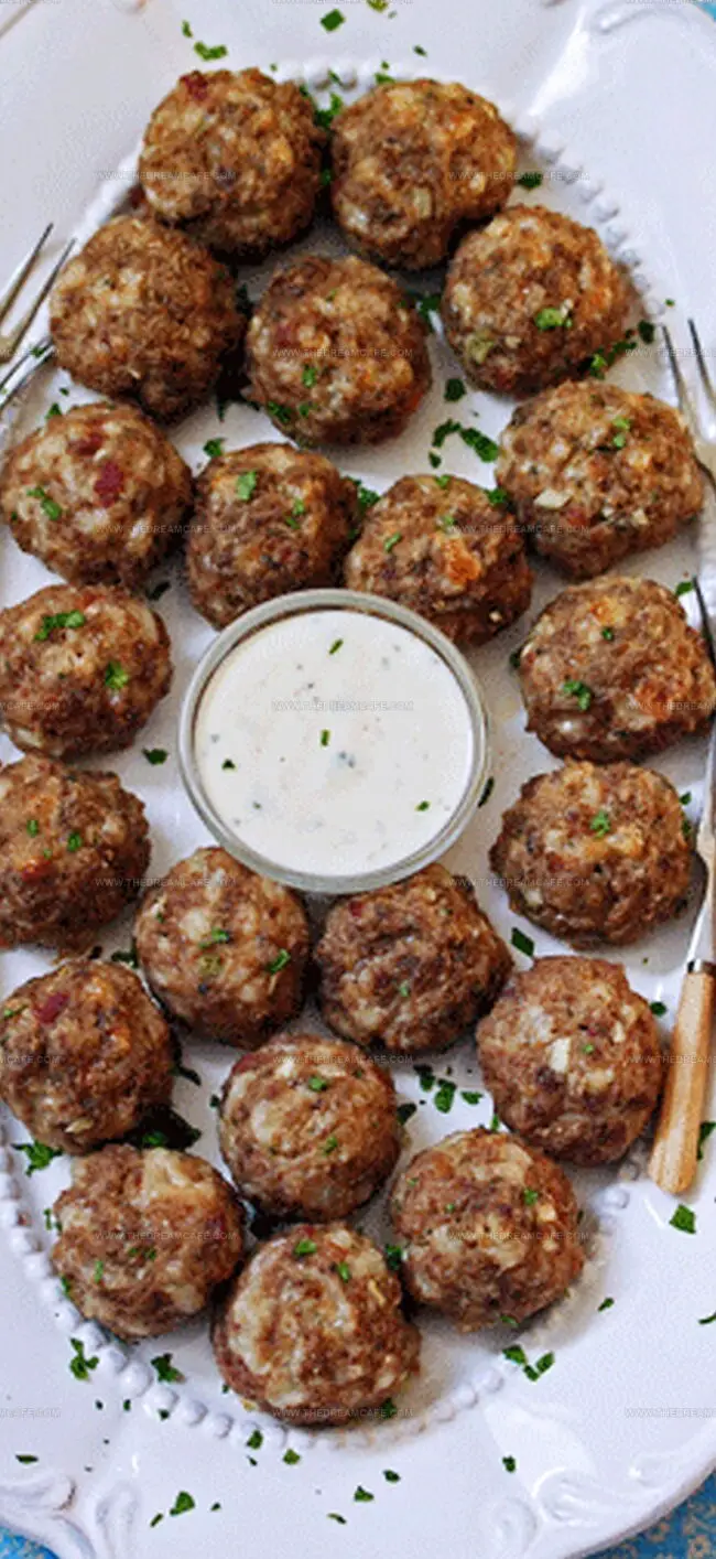 Transfer hot meatballs to a serving platter. Accompany with freshly prepared ranch dipping sauce. Serve immediately for maximum flavor and texture enjoyment.