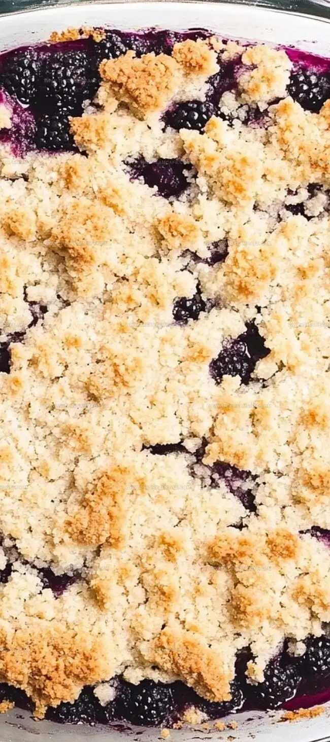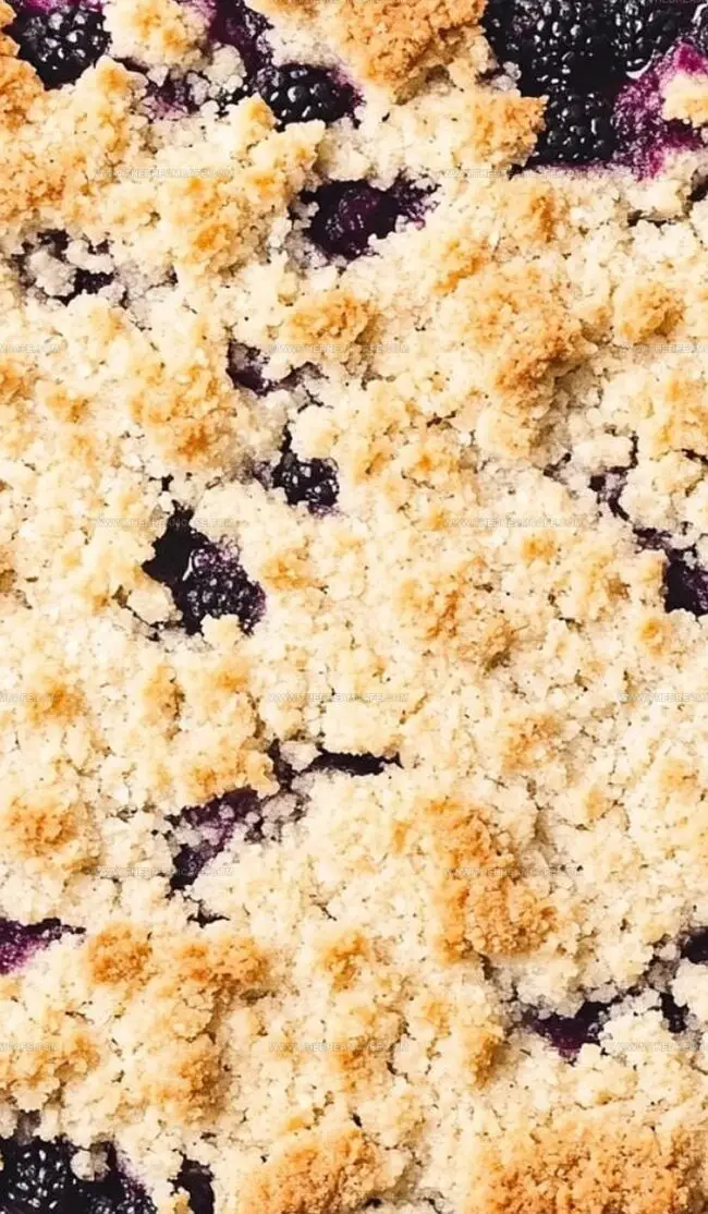 - Delicately distribute the crumbly topping over the blackberry filling, allowing some berries to peek through the gaps for an appealing presentation.