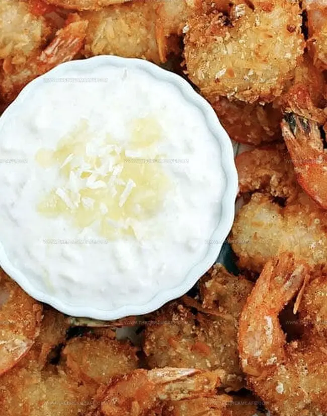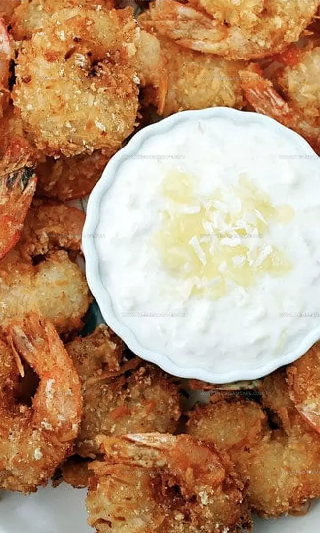Drain fried shrimp on paper towels or a wire rack. Serve warm with pina colada dipping sauce.