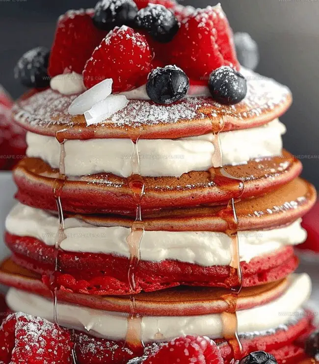 Red Velvet Pancakes With Cream Cheese Frosting invite breakfast lovers into a world of indulgent Southern charm. Rich cocoa-infused batter creates crimson stacks topped with luxurious cream cheese glaze, promising a delightful morning experience you’ll savor with pure culinary pleasure.