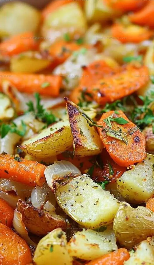 Roast carrots, potatoes, and onions elevate simple ingredients into a culinary masterpiece with minimal effort.