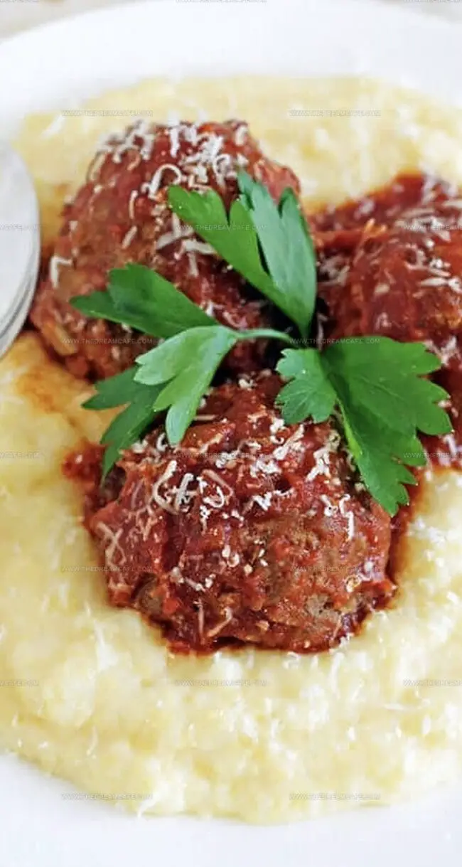 Saucy Italian Meatballs with Cheesy Polenta brings classic Mediterranean flavors straight to your kitchen. Succulent beef meatballs nestled in rich marinara sauce rest atop creamy, parmesan-infused polenta for a comforting meal that transports diners to the heart of Italy.