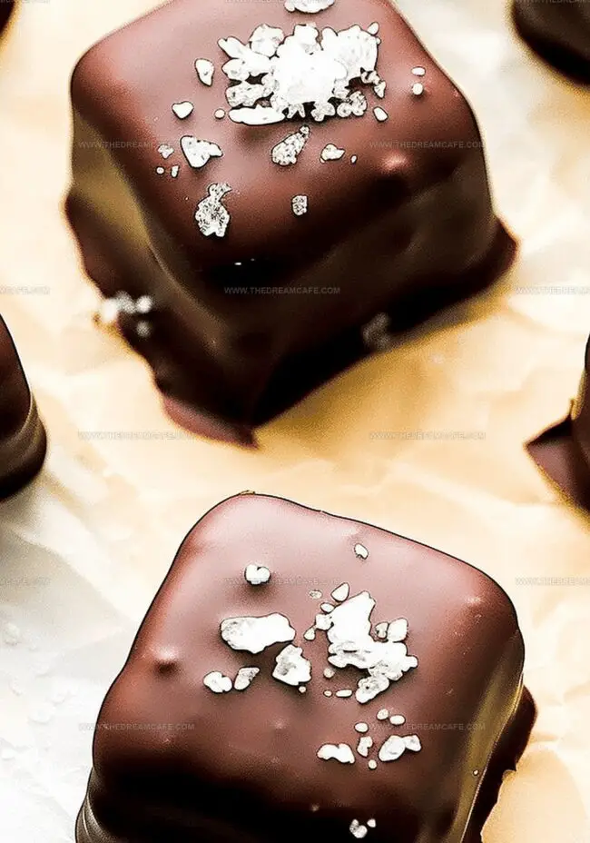 - Finish and Garnish: Place chocolate-coated caramels on fresh parchment, sprinkle with flaky sea salt before chocolate sets completely, then allow to cool at room temperature.