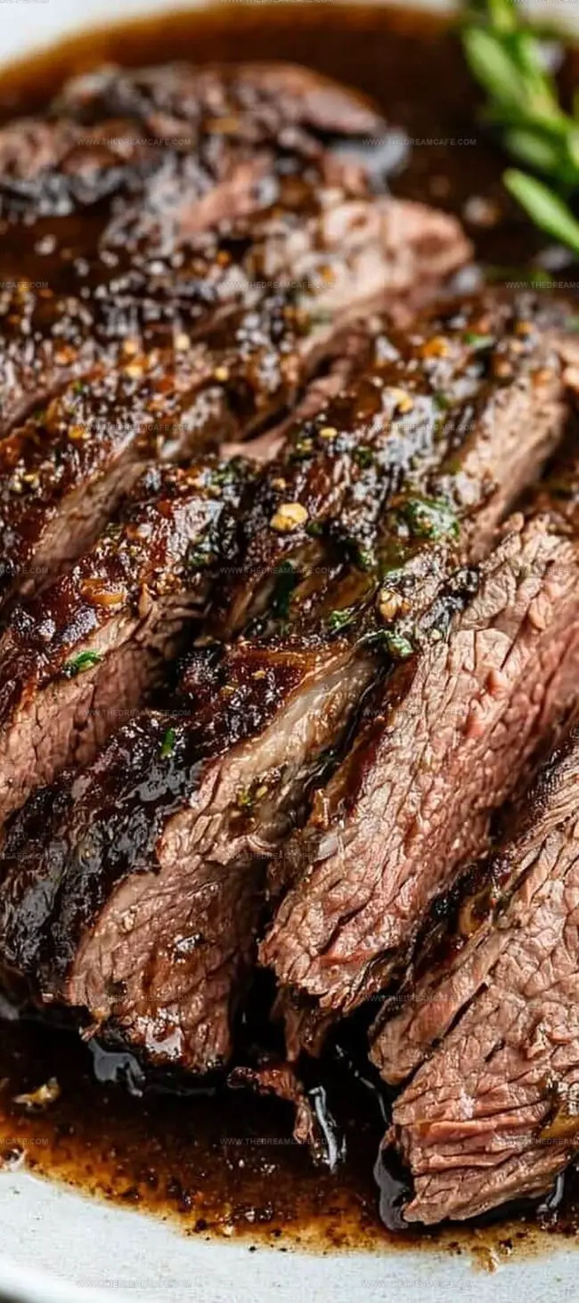 - Create a flavor-packed marinade by combining beef broth, minced garlic, dark brown sugar, aged balsamic vinegar, Worcestershire sauce, low-sodium soy sauce, finely chopped fresh rosemary, crumbled dried thyme, kosher salt, and freshly ground black pepper in a mixing bowl.