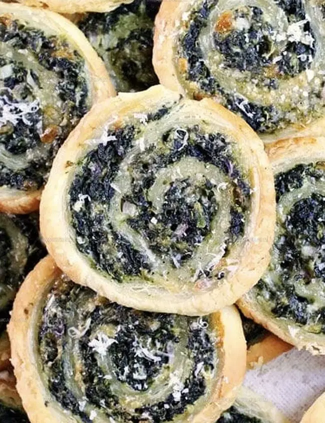 Spinach puff pastry roll-ups dance with culinary creativity, reinventing simple ingredients into a mouthwatering delicacy.