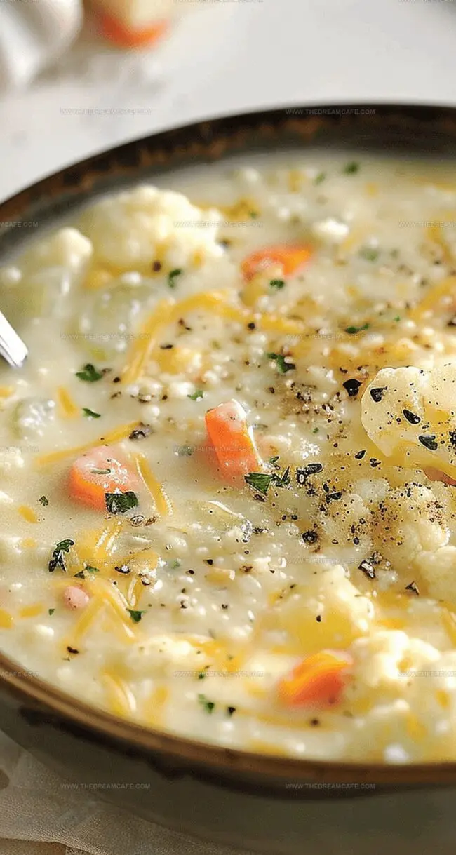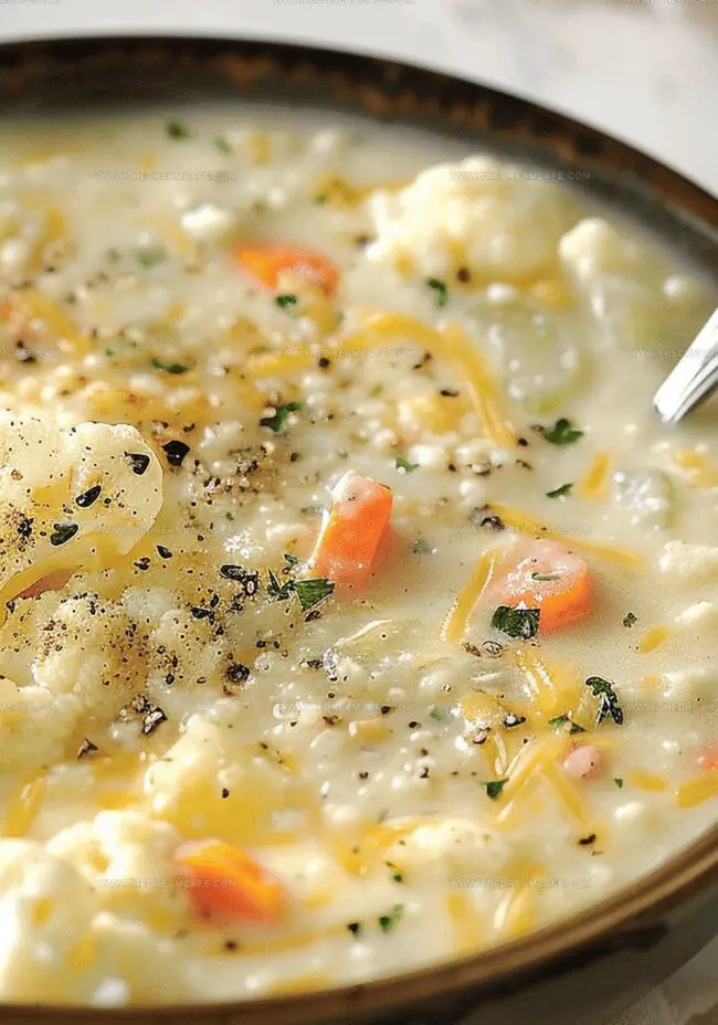 Ladle the soup into warm bowls, inviting everyone to enjoy this comforting and creamy cauliflower experience.
